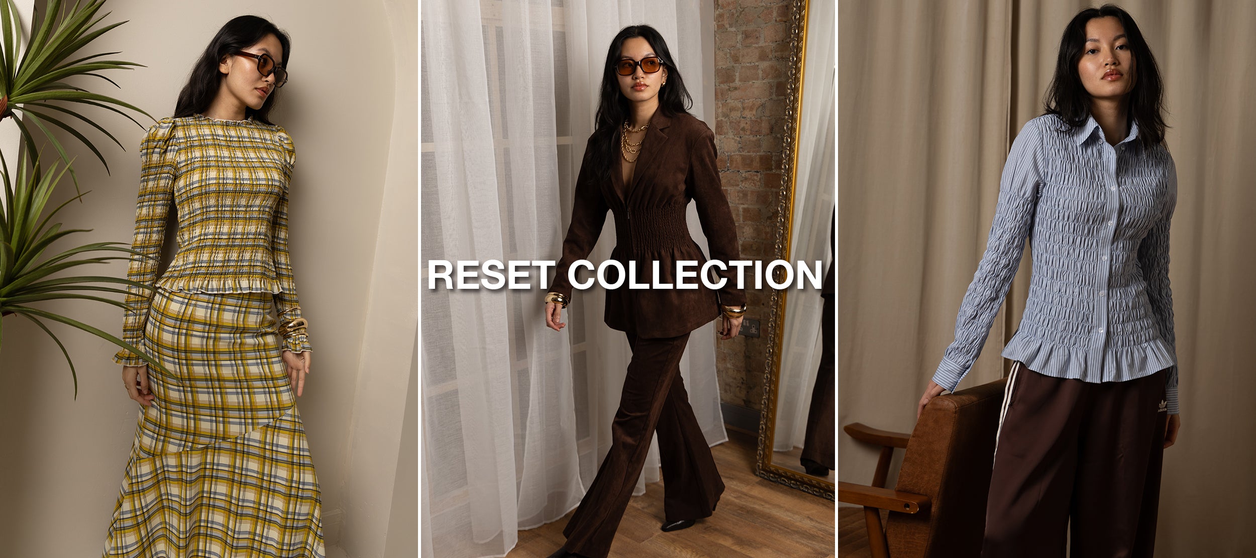 Yellow Plaid Long Sleeve Smocked Top