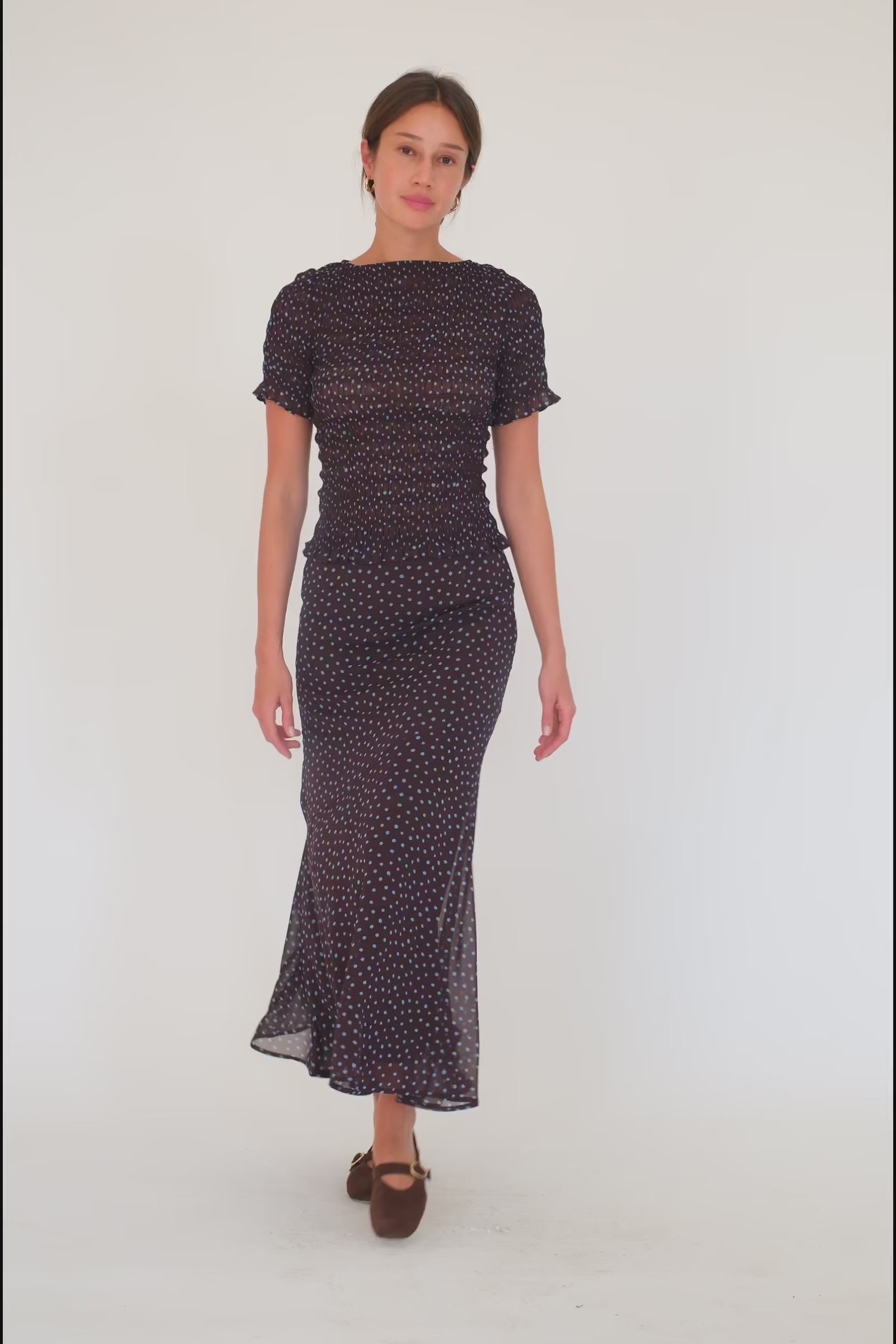 Polka Dot Chiffon Smocked Frill Sleeve Top