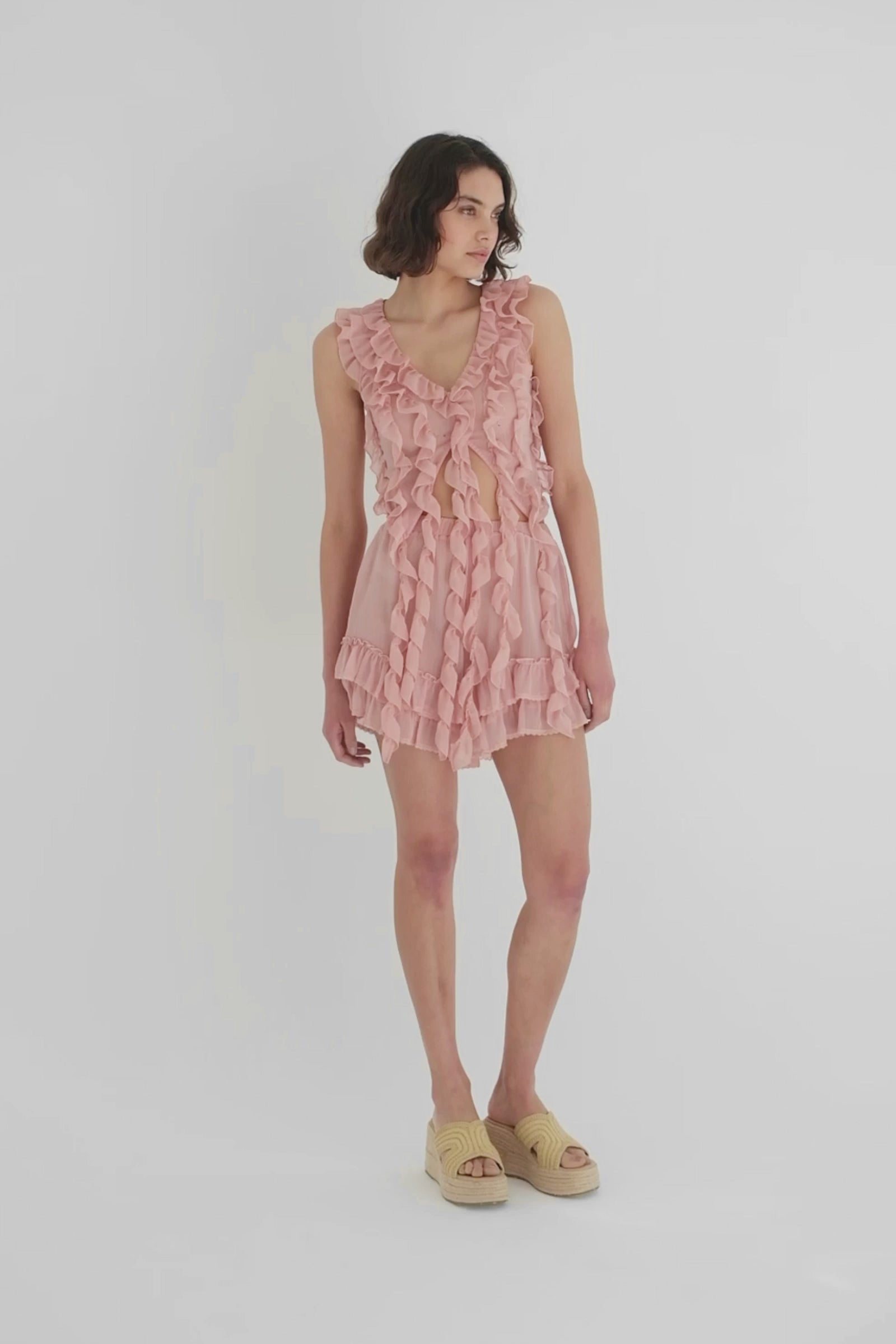 Pink Ruffle Chiffon Top